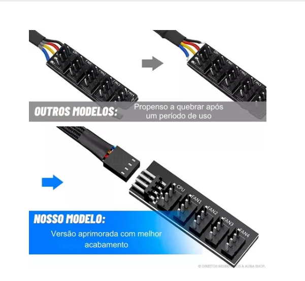 COM O NOSSO HUB, VOCÊ TERÁ O CONTROLE TOTAL SOBRE O RESFRIAMENTO DO SEU SISTEMA. ESTE HUB PERMITE A CONEXÃO SIMULTÂNEA DE ATÉ 5 VENTOINHAS PWM DE 4 PINOS EM APENAS UMA SAÍDA DE ENERGIA DA PLACA-MÃE. SEU DESIGN VERSÁTIL O TORNA COMPATÍVEL COM VENTOINHAS DE VÁRIAS MARCAS, MODELOS E TAMANHOS, INCLUINDO AQUELAS COM LEDS. NÃO IMPORTA A MARCA, MODELO OU POTÊNCIA DA SUA PLACA-MÃE, O NOSSO HUB É A ESCOLHA IDEAL PARA OTIMIZAR O DESEMPENHO TÉRMICO DO SEU COMPUTADOR.