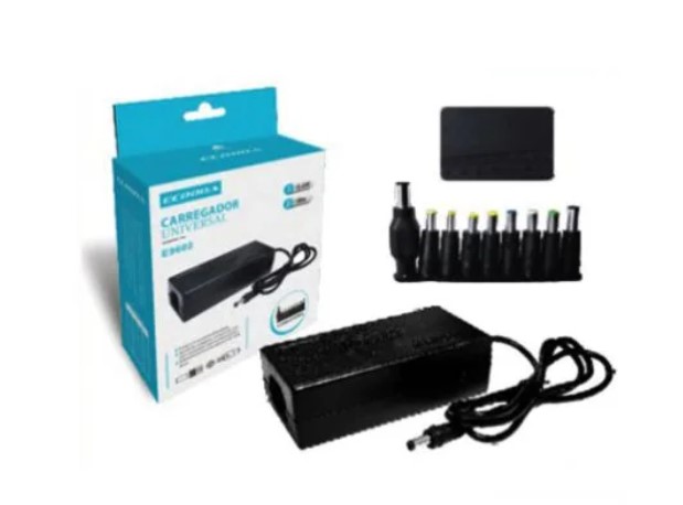 Saída com voltagem ajustável (ex: 12V, 15V, 16V, 18.5V, 19V, 19.5V, 20V, 24V)
